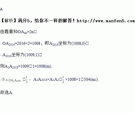 在平面直角坐标系中,一个智能机器人接到如下指令:从原点O出发,按向右,向上,向右,向下的方向依次不断移动,每次移动1m.其行走路线如图所示,第1次移动到A1,第2次移动到A2,…,第n次移动到An.则△OA2A2018的面积是( )