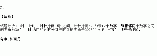 如图,钟表8时30分时,时针与分针所成的角的度数为( )