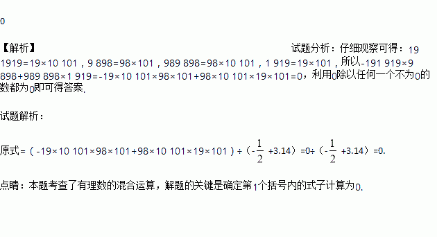 计算:(-191 919×9 898+989 898×1 919)÷(-+3.14).