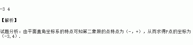 点P在第二象限,P到x轴的距离为4,P到y轴距离为3,则点P的坐标为( , )