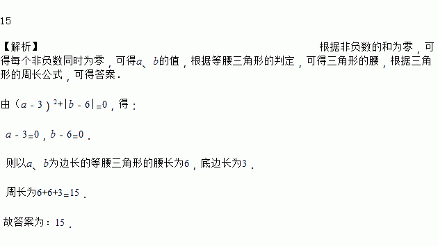 若,则以a、b为边长的等腰三角形的周长是______________.