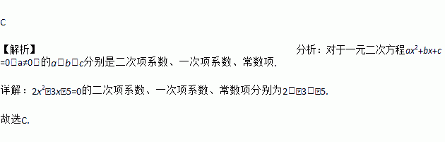 方程2x2﹣3x﹣5=0的二次项系数、一次项系数、常数项分别为( )