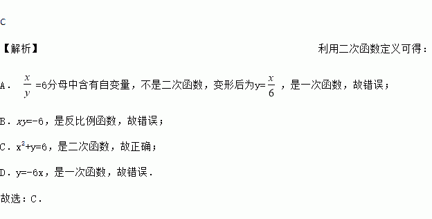 A. =6 B. xy=-6 C. +y=6 D. y=-6x
