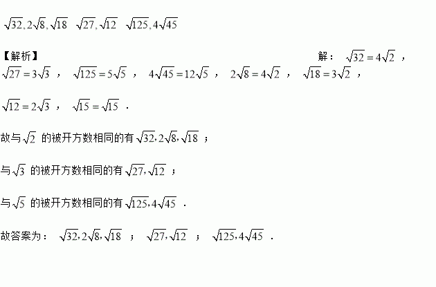 下列二次根式化简后,与的被开方数相同的有______,与的被开方数相同的有______,与的被开方数相同的有______.
