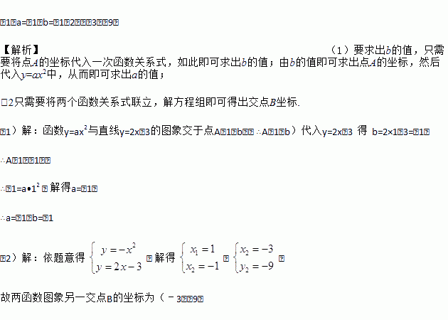已知函数y=ax2与直线y=2x﹣3的图象交于点A(1,b).