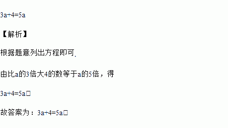 列等式表示:比a的3倍大4的数等于a的5倍,得 ________ .