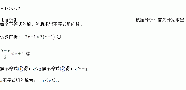 【解析】试题分析:首先求出不等式组的解,然后进行计算.