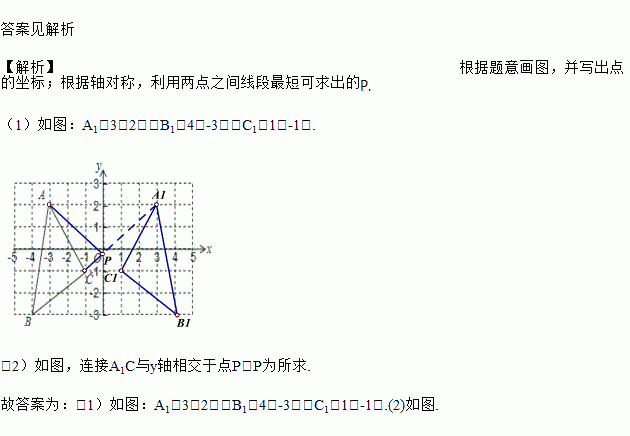 (1)画出△ABC关于y轴对称的△A1B1C1;并写出△A1B1C1的各顶点的坐标.