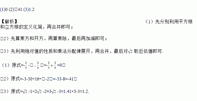 (3)|1-|+2×(-1)(结果精确到0.1,≈1.41).