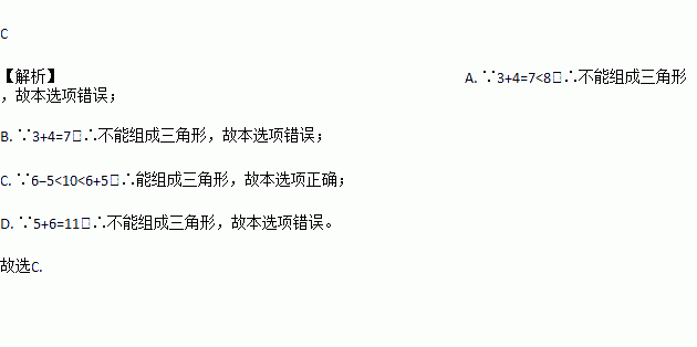 A. 3cm,4cm,8cm B. 3cm,4cm,7cm C. 5cm,6cm,10cm D. 5cm,6cm,11cm