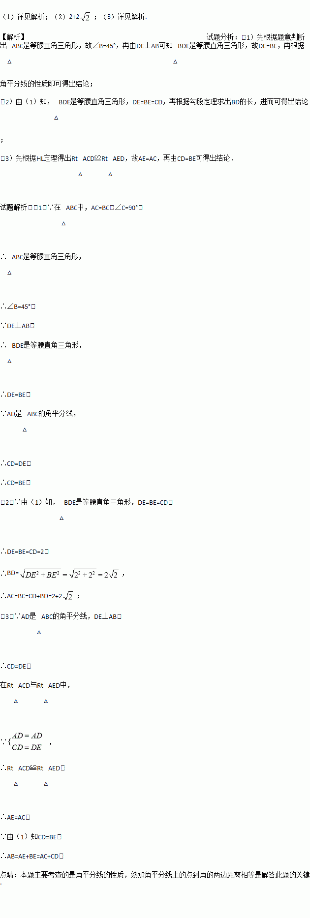 如图,在△ABC中,AC=BC,∠C=90°,AD是△ABC的角平分线,DE⊥AB,垂足为E.