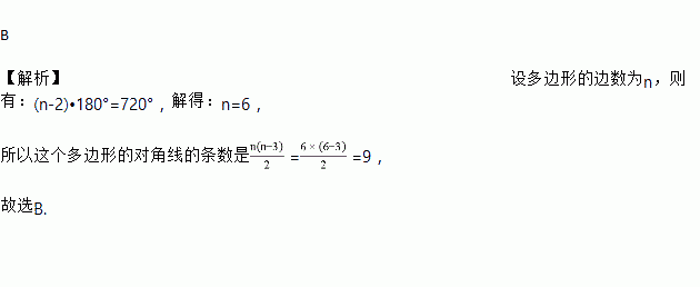 如果一个多边形的内角和是720°,那么这个多边形的对角线的条数是( )