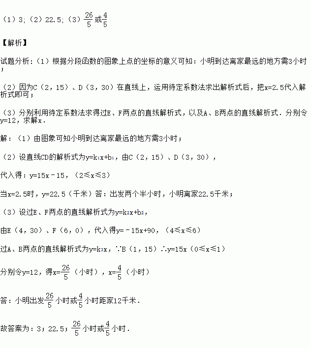 (1)根据图象回答:小明到达离家最远的地方需 小时,