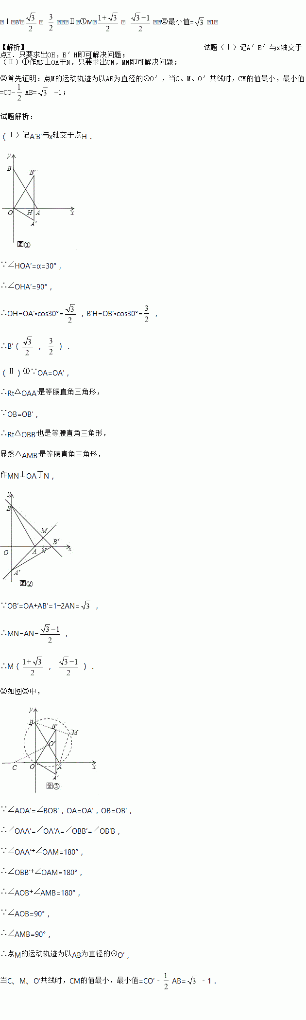 (Ⅰ)如图①,当α=30°时,求点B′的坐标;