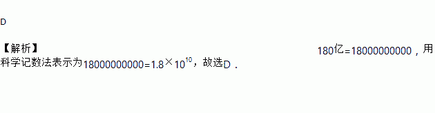 据2017年1月24日《中山日报》报道,三乡镇2016年财政收入突破180亿元,在中山各乡镇中排名第二.将180亿用科学记数法表示为( )