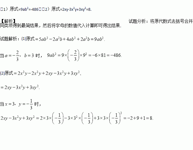 (2),其中x=3,y=-.