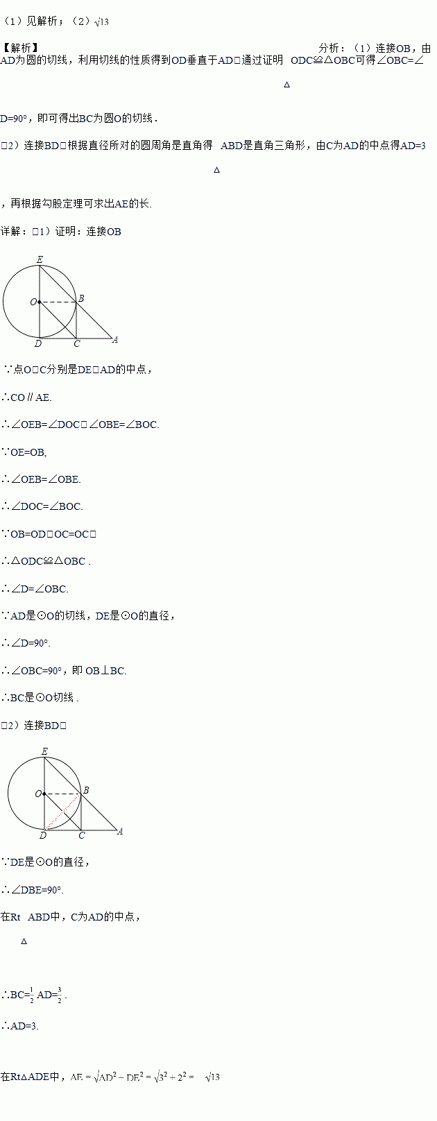 如图,DE是⊙O的直径,过点D作⊙O的切线AD,C是AD的中点,AE交⊙O于点B.