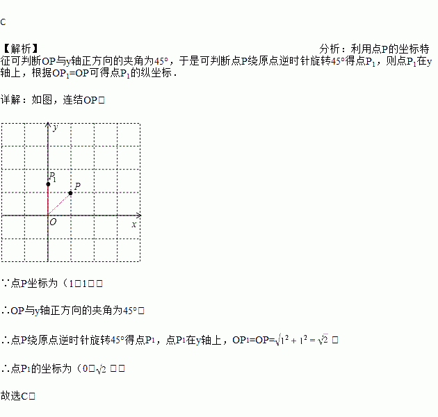 已知点P的坐标为(1,1),若将点P绕着原点逆时针旋转45°,得到点P1,则P1点的坐标为( )