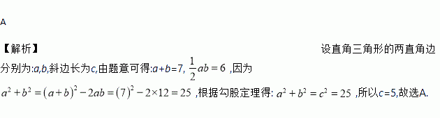 直角三角形两直角边和为7,面积为6,则斜边长为( )