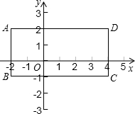 在直角坐标系中,长方形ABCD的边AB可表示为(-2,y)(-1≤y≤2),边AD可表示为(x,2)(-2≤x≤4).
