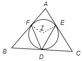 7、△ABC的内切圆⊙I分别切BC、CA、AB于D、E、F,若∠A=70°,则∠EDF=