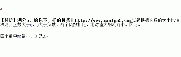 在实数1、0、﹣1、﹣2中,最小的实数是( )