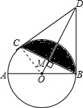 (2)阴影面积=S扇形OBC-S△OBC.根据切线长定理知△BCD为等边三角形,可求∠BOC的度数,运用相关公式计算.