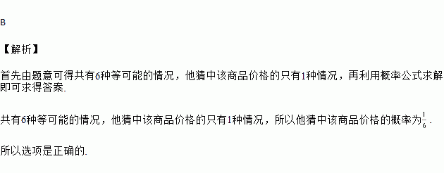 位数中,任意猜一个,求他猜中该商品价格的概率( )![]()