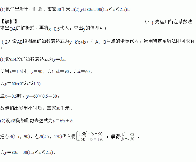 “五一”期间,申老师一家自驾游去了离家170千米的某地,下面是他们离家的距离y(千米)与汽车行驶时间x(小时)之间的函数关系的图像.