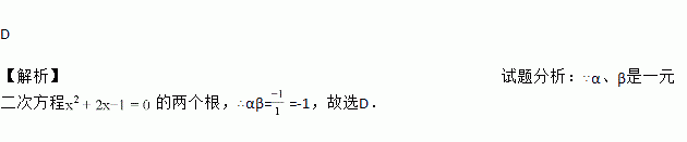 设α,β是一元二次方程x2+2x-1=0的两个根,则αβ的值是( )