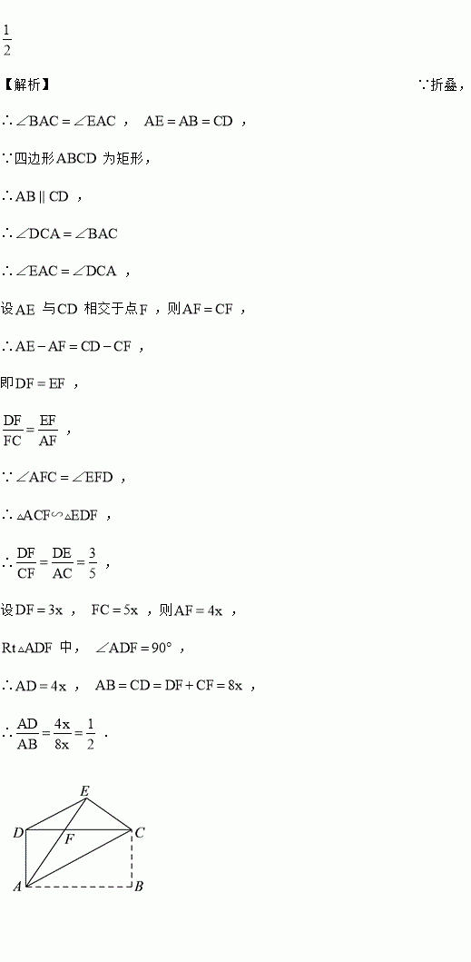 如图,已知四边形ABCD是矩形,把矩形沿直线AC折叠,点B落在点E处,连接DE.若DE:AC=3:5,则的值为________.