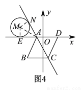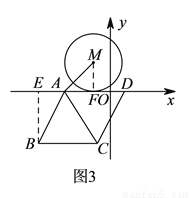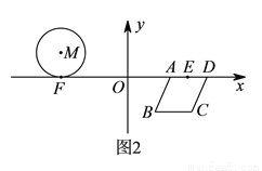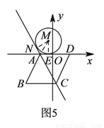 【解析】试题分析:(1)过点B作BE⊥AD,垂足为E.由点A和点B的坐标可知:BE=,AE=1,依据勾股定理可求得AB的长,从而可求得菱形的周长;(2)记 M与x轴的切线为F,AD的中点为E.先求得EF的长,然后根据路程=时间×速度列出方程即可;平移的图形如图3所示:过点B作BE⊥AD,垂足为E,连接MF,F为 M与AD的切点.由特殊锐角三角函数值可求得∠EAB=60°,依据菱形的性质可得到∠FAC=60°,然后证明△AFM是等腰直角三角形,从而可得到∠MAF的度数,故此可求得∠MAC的度数;(3)如图4所示:连接AM,过点作MN⊥AC,垂足为N,作ME⊥AD,垂足为E.先求得∠MAE=30°,依据特殊锐角三角函数值可得到AE的长,然后依据3t+2t=5-AE可求得t的值;如图5所示:连接AM,过点作MN⊥AC,垂足为N,作ME⊥AD,垂足为E.依据菱形的性质和切线长定理可求得∠MAE=60°,然后依据特殊锐角三角函数值可得到EA=,最后依据3t+2t=5+AE.列方程求解即可.
