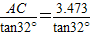 解:(1)如图,在Rt△ABC中,AC=AB•sin44°=5sin44°≈3.473(米).