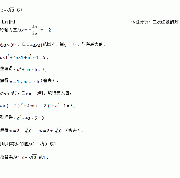 已知二次函数,当时, 的最大值为5,则实数的值为_______.