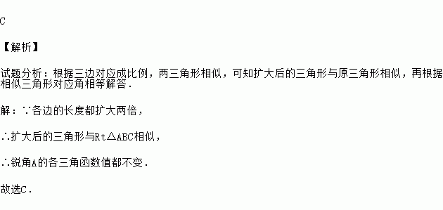 ÔÚRt¡÷ABCÖУ¬¸÷±ßµÄ³¤¶È¶¼À©´óÁ½±¶£¬ÄÇôÈñ½ÇAµÄ¸÷Èý½Çº¯ÊýÖµ£¨ £©