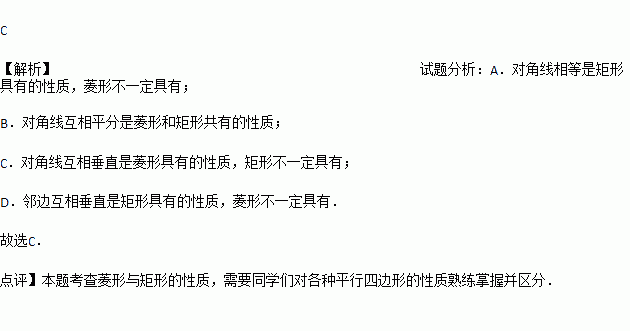 下列性质中,菱形具有而矩形不一定具有的是( )