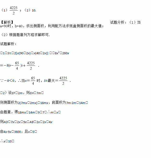 (1)当矩形纸板ABCD的一边长为90厘米时,求纸盒的侧面积的最大值;