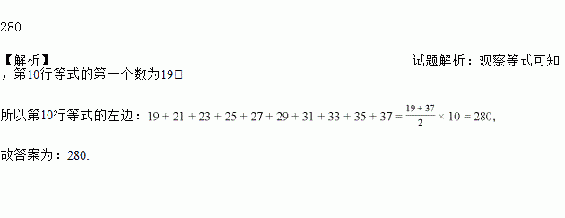 观察下列等式,按此规律,第10行等式的右边等于_____.