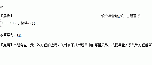 小强今年13岁,比爸爸年龄的大1岁,则今年爸爸的年龄为________岁.