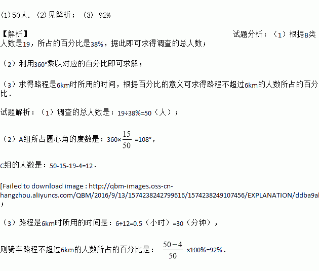 (3)如果骑自行车的平均速度为12km/h,请估算,在租用公共自行车的市民中,骑车路程不超过6km的人数所占的百分比。