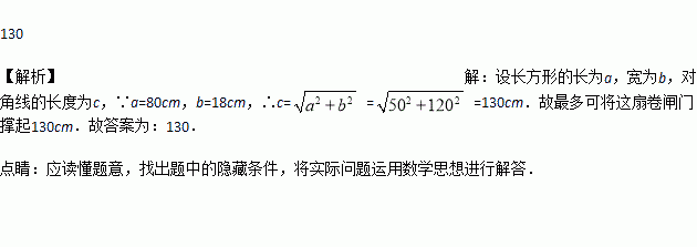 如图,一扇卷闸门用一块宽50cm,长120cm的长方形木板撑住,用这块木板最多可将这扇卷闸门撑起___________cm高.