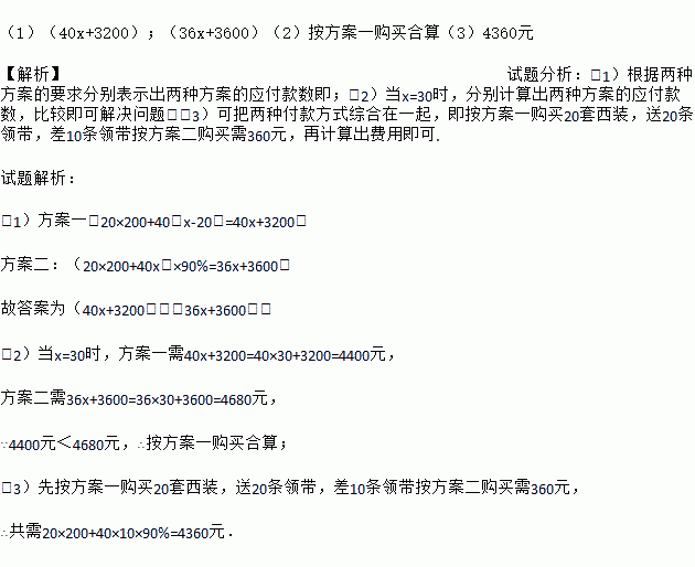 某自主服装品牌设计出了一种西装和领带,西装每套定价200元,领带每条定价40元.在推广服装品牌初期开展促销活动,可以同时向客户提供两种优惠方案:
