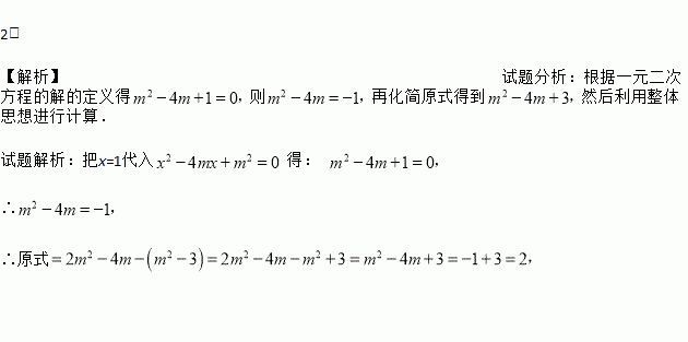 已知x=1是关于x的一元二次方程x2﹣4mx+m2=0的根,求代数式的值.