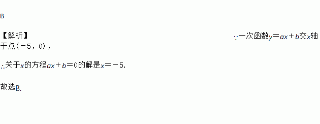 一次函数y=ax+b交x轴于点(-5,0),则关于x的方程ax+b=0的解是( )