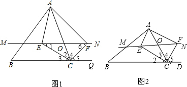 分析:(1)根据角平分线定义得出∠2=∠3,∠4=∠5,根据平行线性质得出∠1=∠3,∠6=∠5,推出∠1=∠2,∠6=∠4,推出EO=OC,FO=OC,即可得出答案;