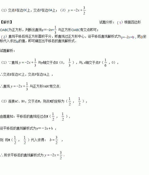 进行平移,平移后恰好能把正方形OABC分为面积相等的两部分,请求出平移后的直线解析式.