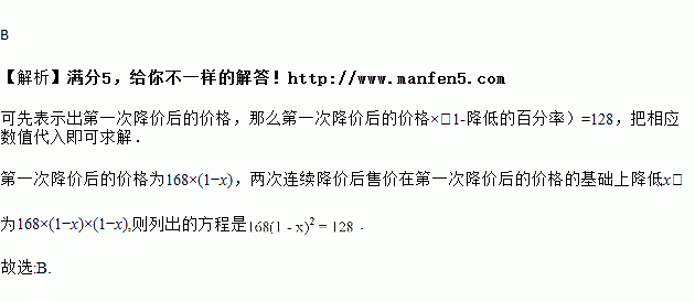某商品原价元,经过连续两次降价后的售价为元,设平均每次降价的百分数为,则下面所列方程中正确的是( )