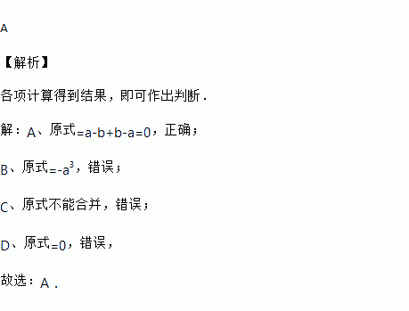 A. (a﹣b)+(b﹣a)=0 B. 2a3﹣3a3=a3 C. a2b﹣ab2=0 D. yx﹣xy=2y