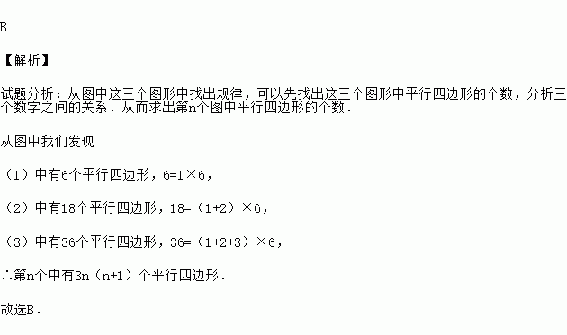 根据如图所示的(1),(2),(3)三个图所表示的规律,依次下去第个图中平行四边形的个数是( )