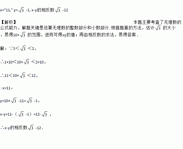 =x+y,其中x是整数,且0<y<1,求x-y的相反数.